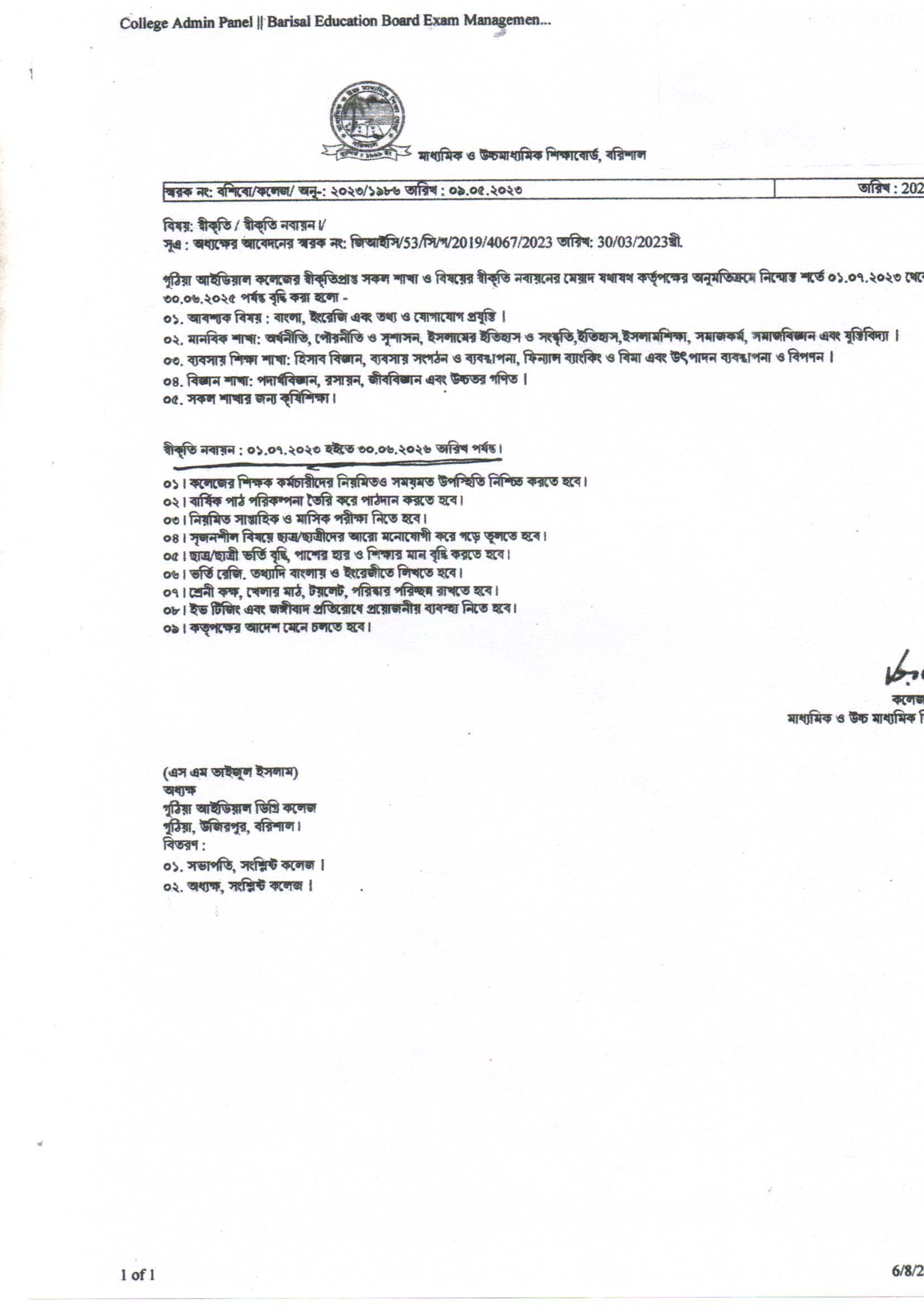 একাদশ শ্রেনীর ভর্তি সংক্রান্ত