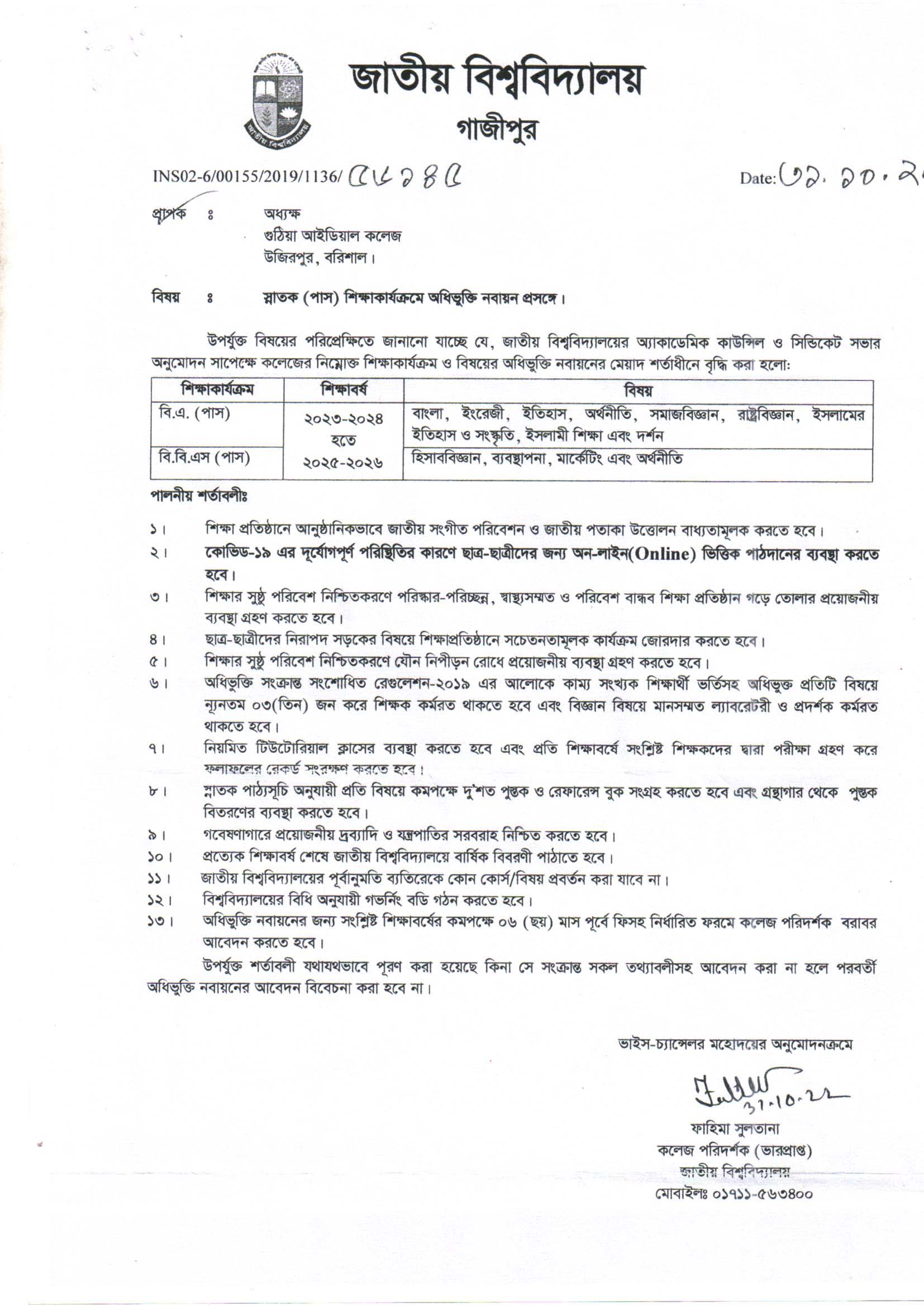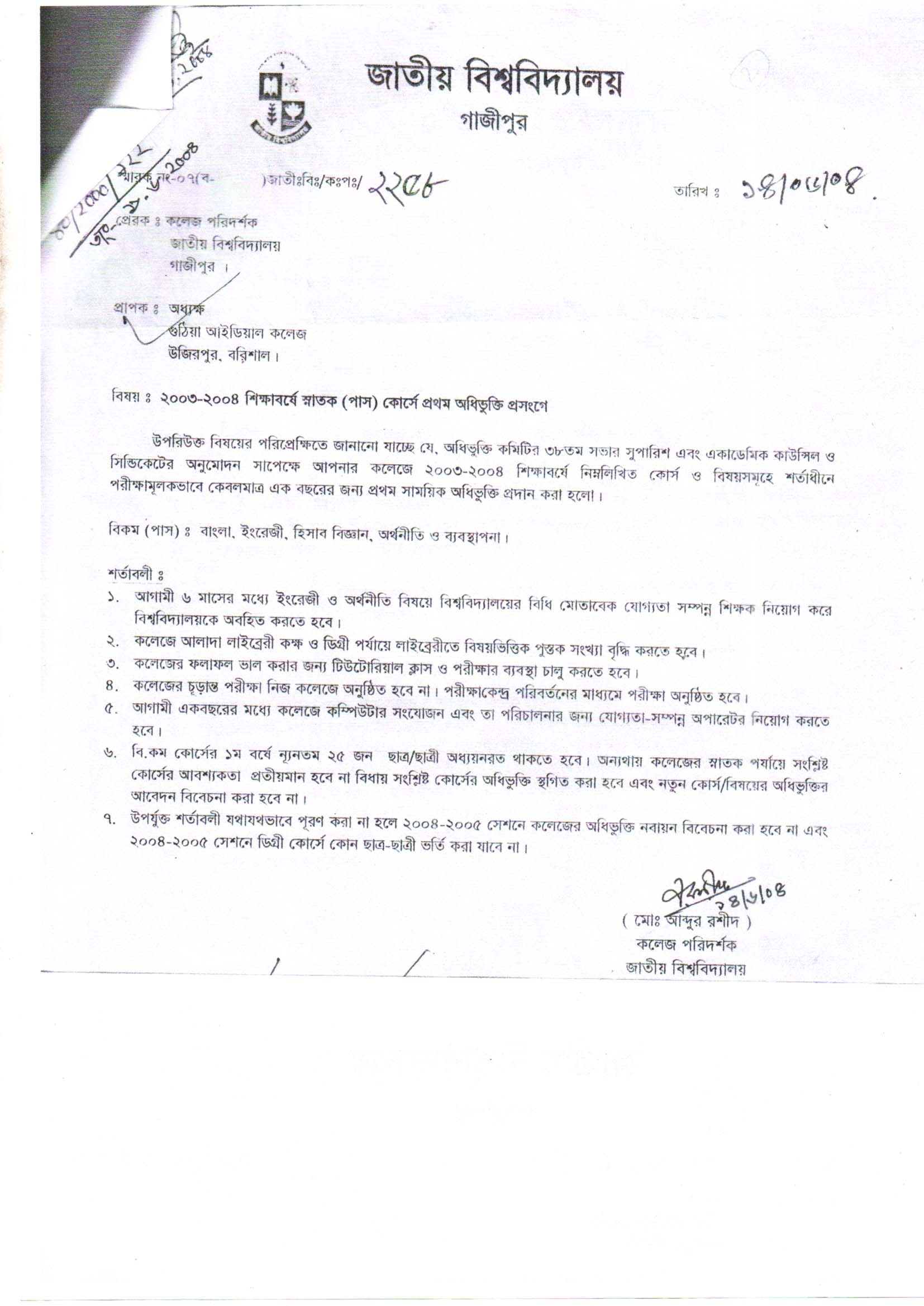 ডিগ্রি ১ম বর্ষ ভর্তি সংক্রন্ত
